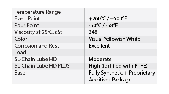 SL-251 Fully Synthetic Heavy Duty Plus (PTFE) is a fully synthetic super high temperature and high load chain oil. Specially developed to meet the demand of modern chain systems working under high temperature and load.